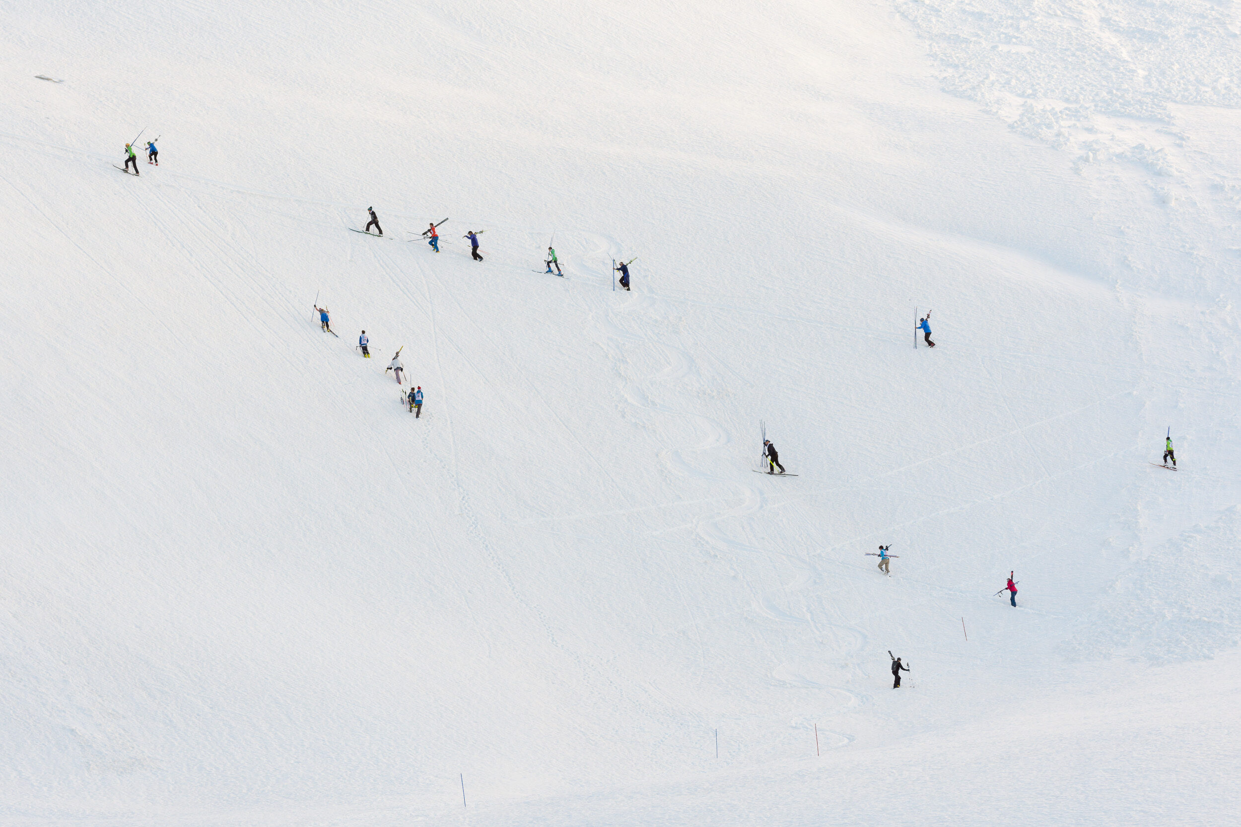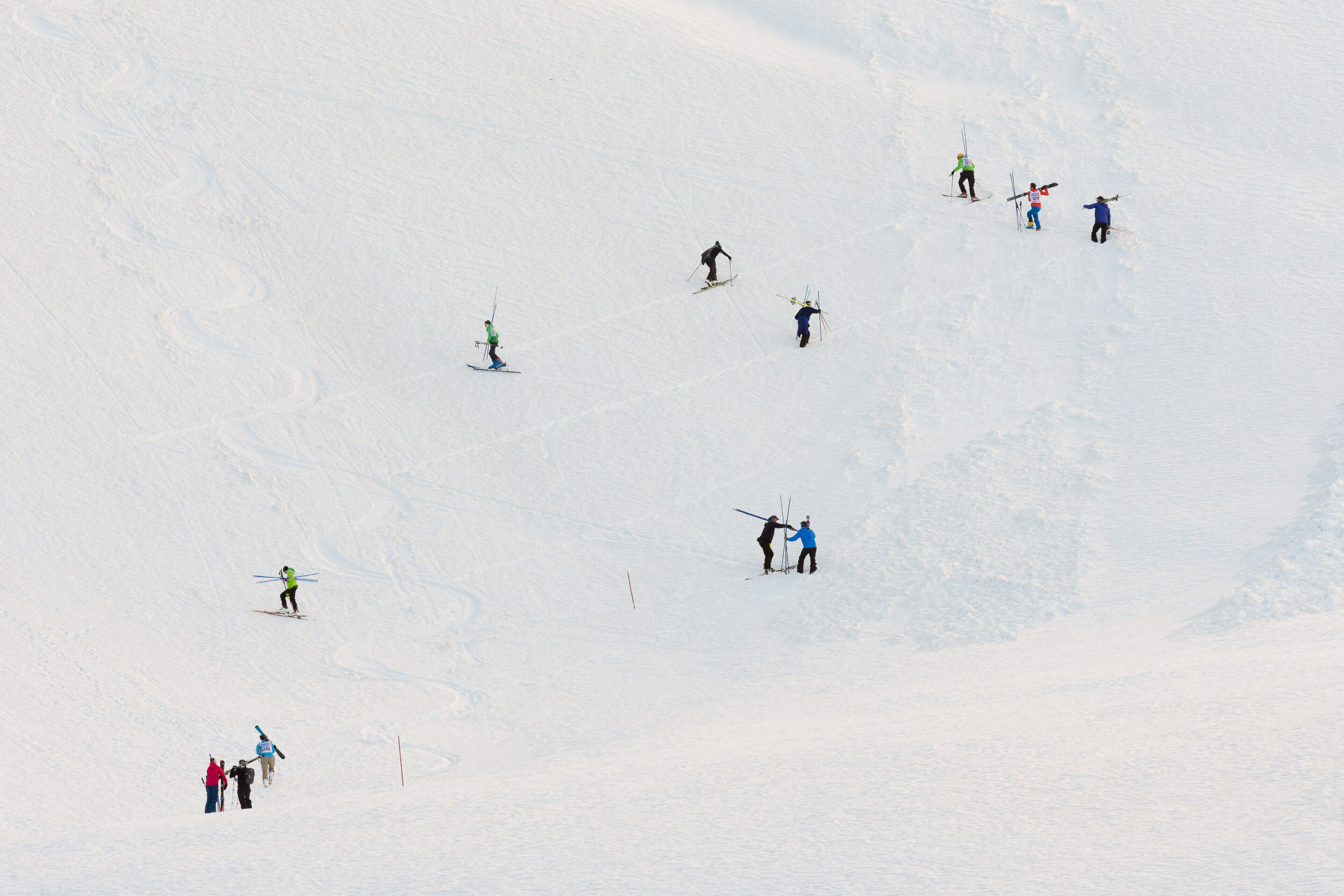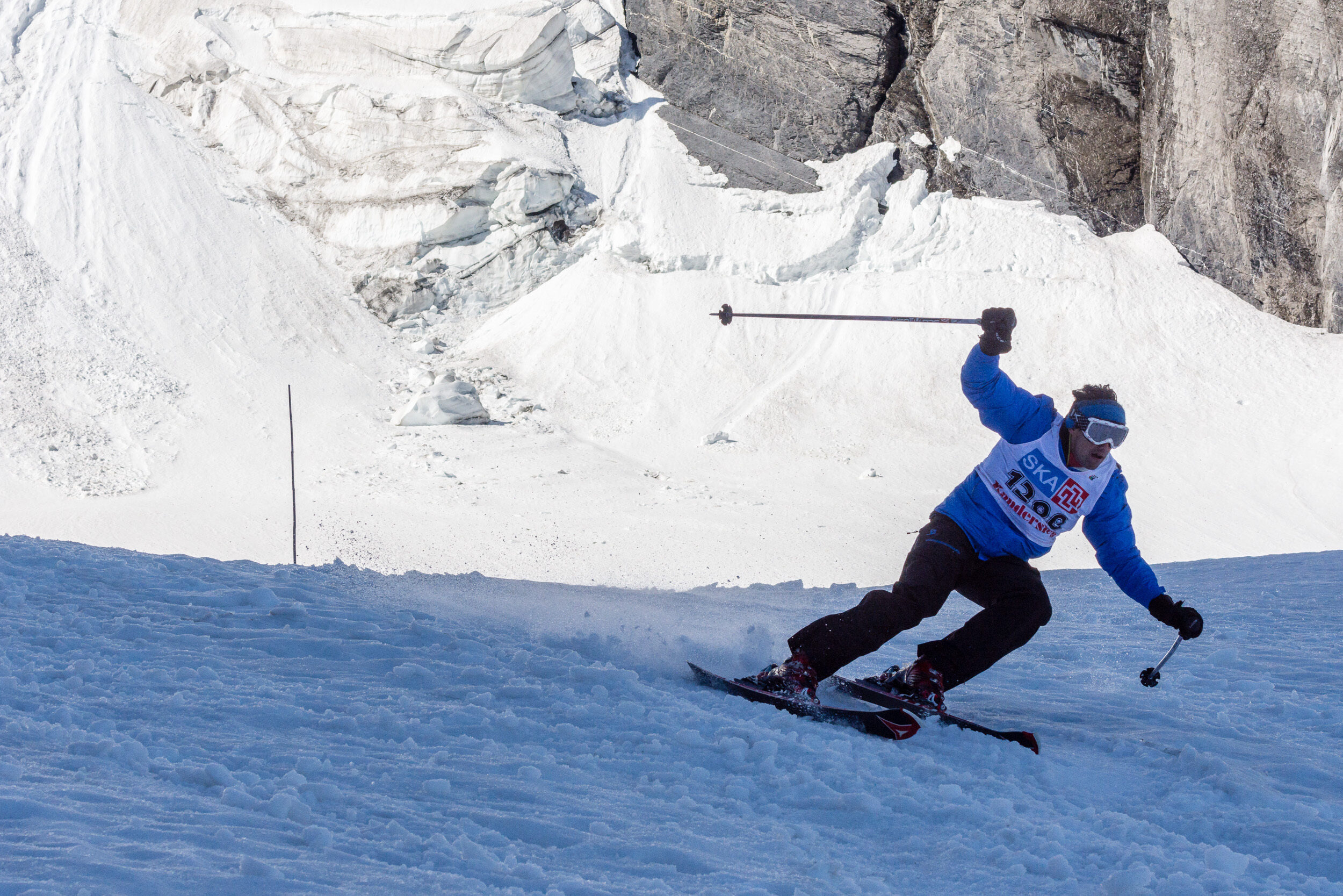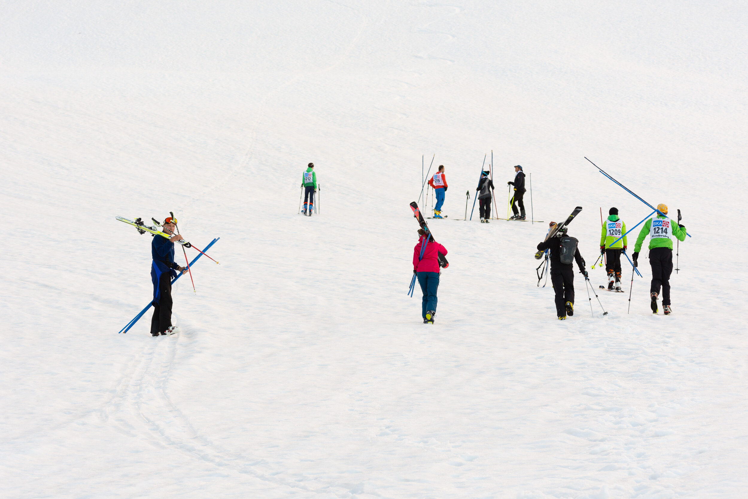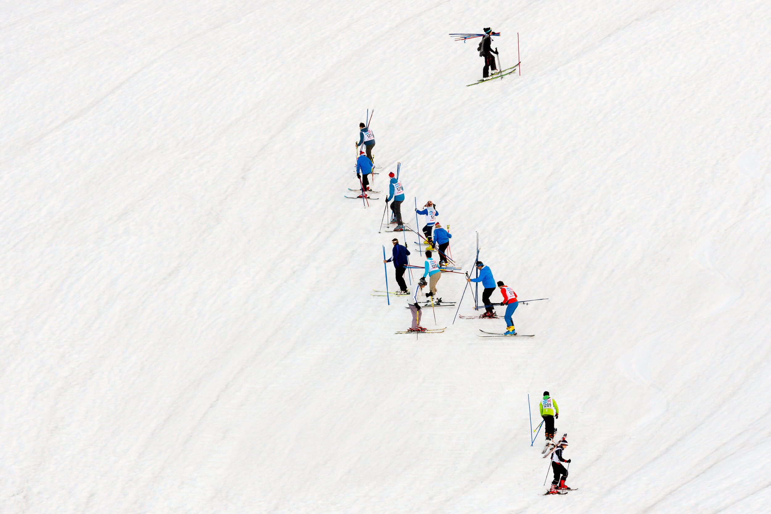 Bildserie: Am Fründenrennen im Kanton Bern steigt man bis heute zu Fuss den Berg hinauf – wie zu Arnold Lunns Zeiten, als es erst wenige Skilifte gab. Umso ausgelassener sind die Abfahrten danach. (© M. Volken)