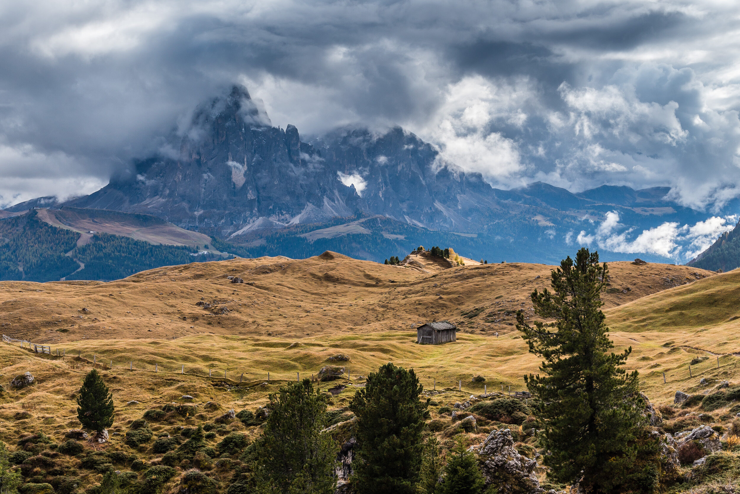 Saslonch/Langkofel von Mastlé aus, Gherdëina/Gröden, Südtirol (© M. Volken)