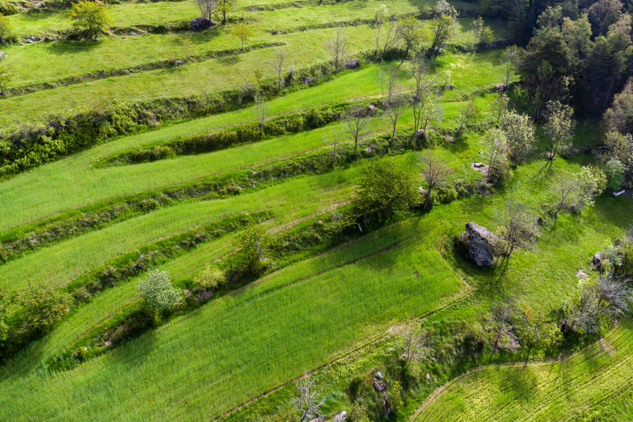 Traditionell bildet die dreistufige Viehhaltung – bestehend aus Talgut, Maiensäss und Alp – das Rückgrat der Alpwirtschaft und prägt bis heute die Berglandschaft. Die drei Begriffe beziehen sich auf die drei verschiedenen jahreszeitlichen Höhenstufen, die in der Viehwirtschaft genutzt werden. Bauern und ihre Tiere orientieren sich an der Schneelinie, die sich langsam in höhere Lagen zurückzieht und neues Gras freisetzt. Während sich die Tiere von den frischen Pflanzen auf der Alp ernähren, mähen die Bäuerinnen das Gras im Tal als Heu für die Wintermonate. Die Viehhaltung in drei Etappen maximiert die Ausnutzung der Futteroptionen in der vertikalen Berglandschaft.